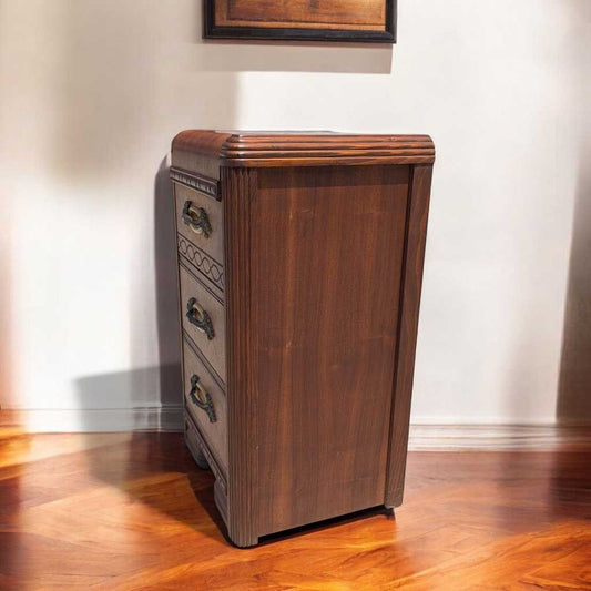 Art Deco Nightstand – 1930s Vintage Bedside Table, Waterfall Edge, 26" Tall, Excellent Condition