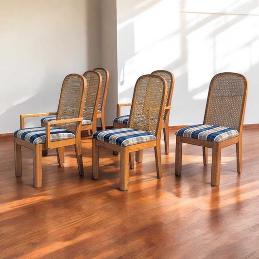 Cane Back Dining Chairs, Set of 6 Postmodern c. 1980s