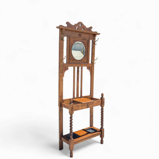 Antique Oak Hall Tree with Mirror, c. 1900s