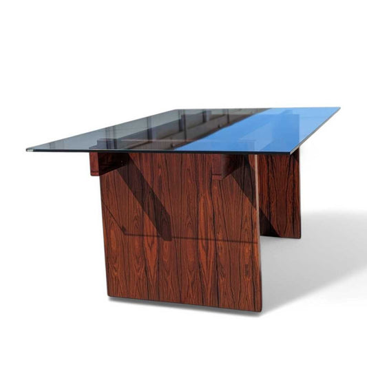 Sigurd Hansen Rosewood Dining Table – Mid-Century Modern Glass-Top, Vintage Scandinavian Design, Sleek and Stylish