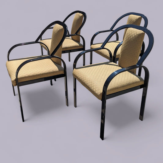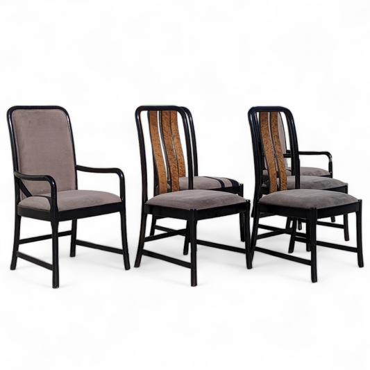 Six Dining Chairs by Bernhardt, Black Lacquer + Birdseye Maple