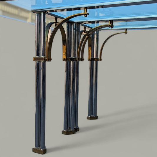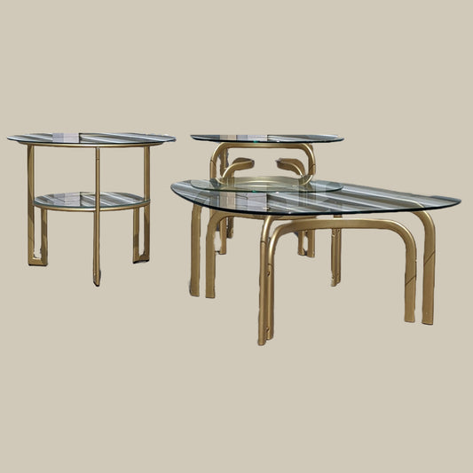 Trio Of Postmodern Glass Top Tables | 80s | MCM | Gold | Brass | Mid Century