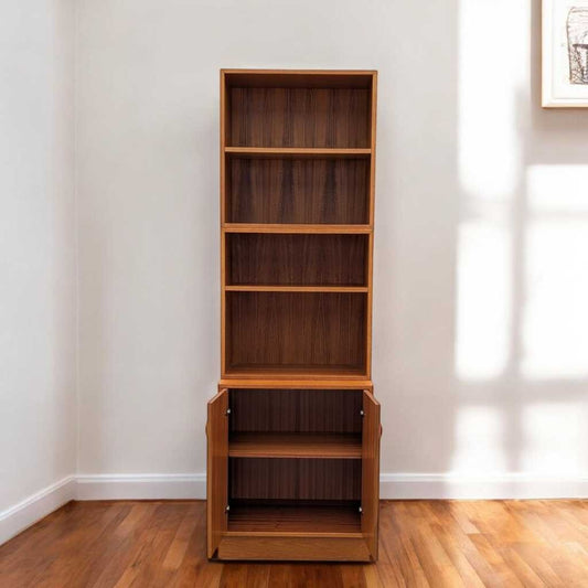 Teak Bookcase – Upright Freestanding Mid Century Modern Storage, Modular MCM Cabinet, Vintage Teak Shelf