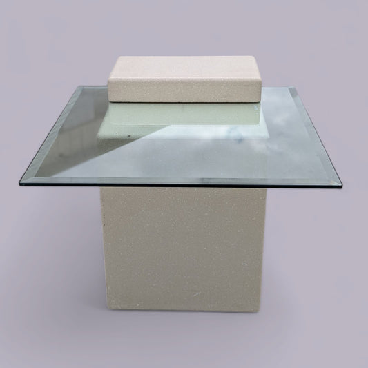Unique Side Table, Postmodern, 80s, Glass, Plaster Base, End Table, Nightstand, Mid Century