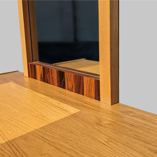 Unique Vintage Rad Dresser, Oak + Rosewood, Chrome Accents, Made in Canada, Mid Century, 70s, Lowboy