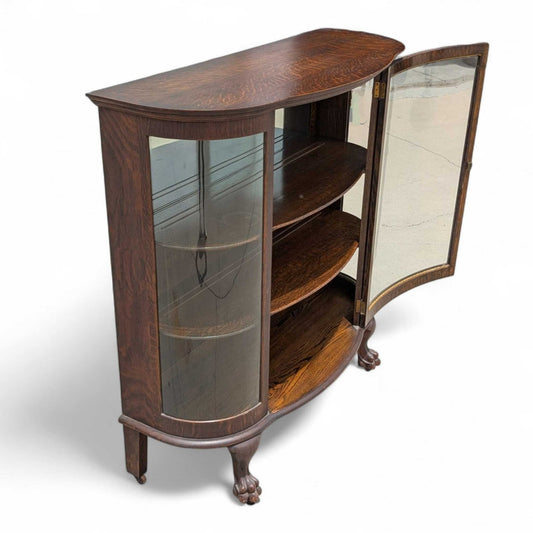 Vintage Curved Glass China Cabinet – Bow Front Display Hutch w/ Claw Feet, 49" Wide, Early 20th Century Style