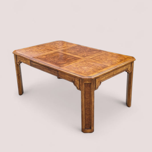 Vintage Burl Wood Dining Table, Hollywood Regency, New Deco, Mid Century, Square, Rectangular, Kitchen, Dining Room