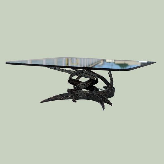 Vintage Coffee Table by Silas Seandel, Brutalist, Sculptural, Glass Top, Bronze Base