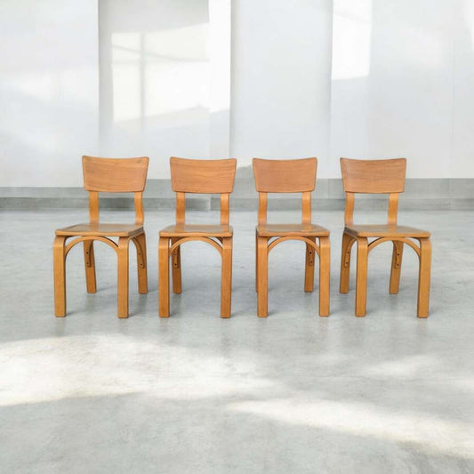 Vintage Dining Chairs by Thonet, Beech Saddle Seat Dining Chairs, Bentwood, C. 1940s