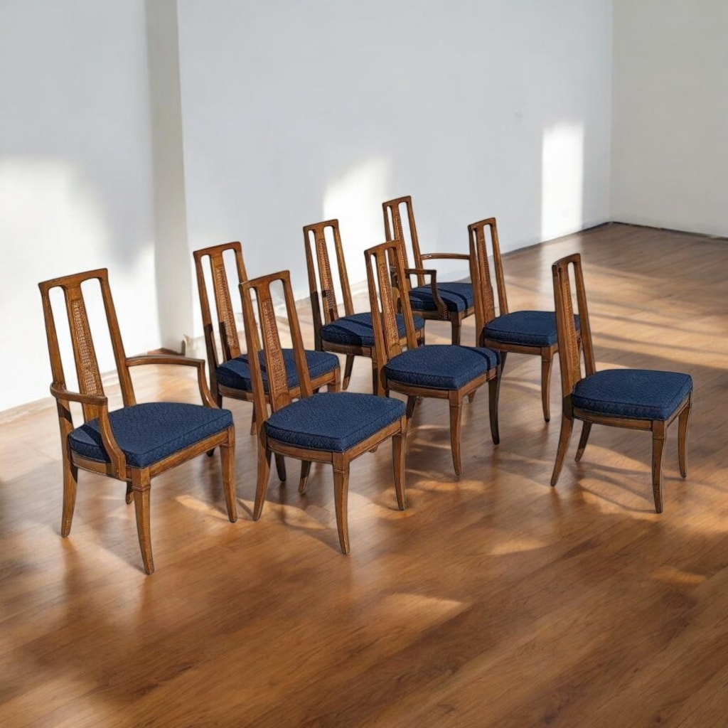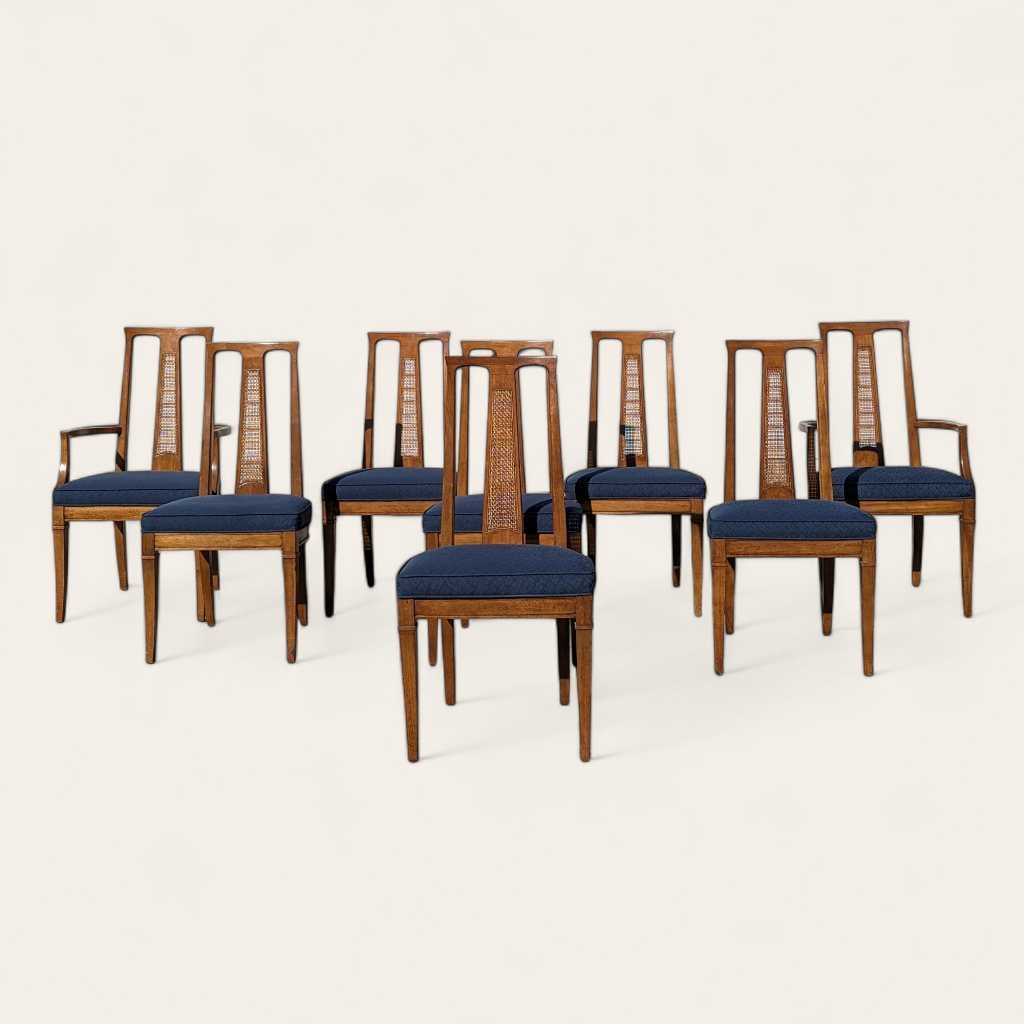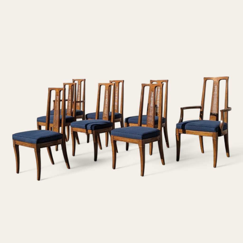 8 Mid Century Modern Drexel Triune Mahogany Cane Back Dining Chairs