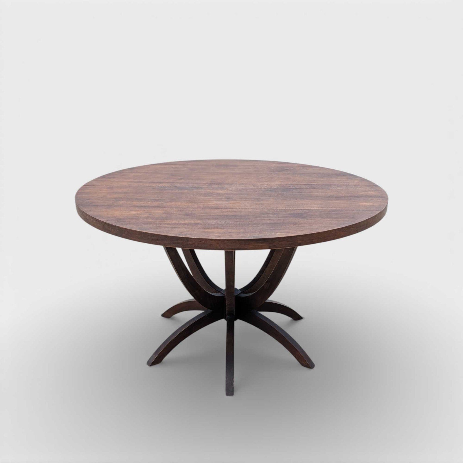 The round top offers a warm, inviting surface ideal for everyday dining or intimate gatherings, while the pedestal base allows for comfortable seating and visual openness. Its timeless form makes it an excellent fit for Mid-Century, modern, eclectic, or design-forward interiors.