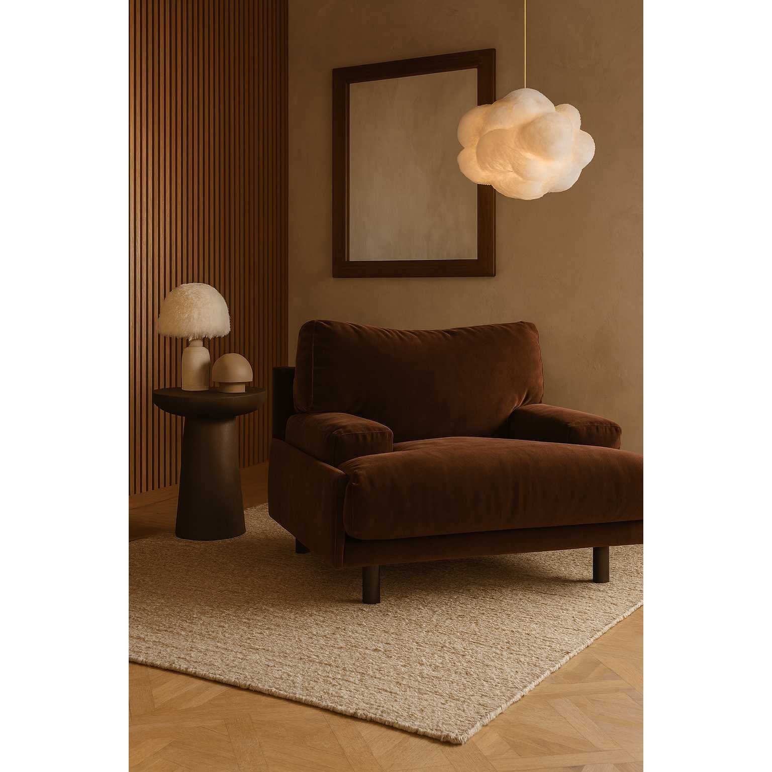 Inspired by the sculptural forms of 1980s Italian design, this lounge chair is a made-to-order reproduction of an original vintage piece we sourced for our collection.