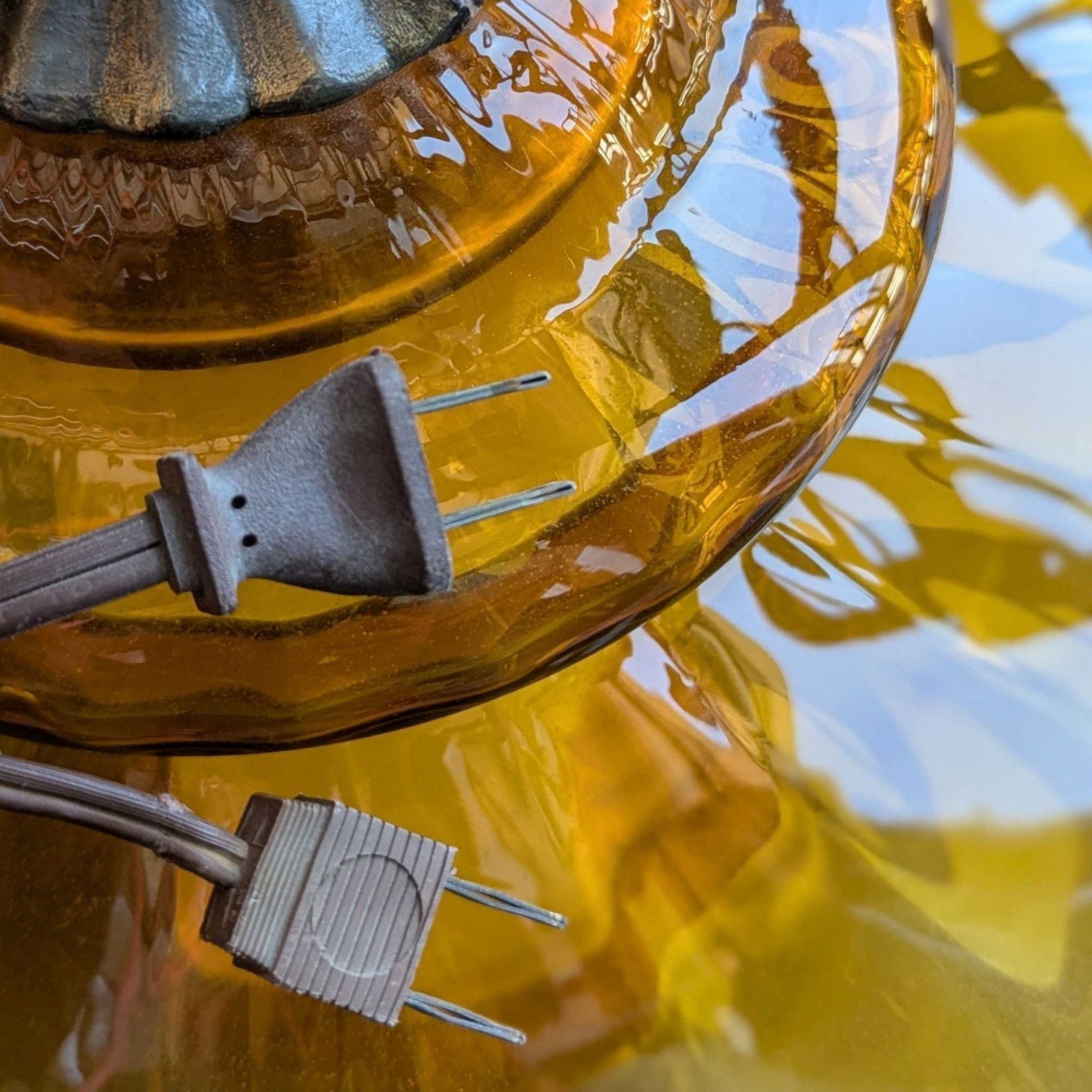 Pair of Vintage Amber Glass Table Lamps with Brass Accents | Hollywood Regency Mid-Century Lighting